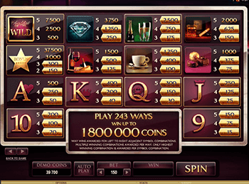 Почувствовать себя аристократом всем желающим поможет игровой аппарат The Finer Reels Of Life. Запустив симулятор, легко представить себя в мягком кожаном кресле перед камином, языки пламени в котором отсвечиваются в бокале с дорогим вином или изысканным шампанским, или даже с крепким виски. Все самые лучшие напитки и закуски будут в вашем распоряжении, а дым от толстых кубинских сигар туманным облаком будет подниматься вверх, источая приятный аромат. Окунуться в незабываемую атмосферу достаточно легко. Для этого нужно запустить эмулятор, в котором игровой клуб Вулкан предлагает играть бесплатно. Если же демо режим не для вас, то можно играть на деньги в азартные игры от официального казино.